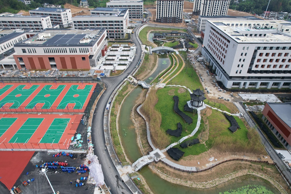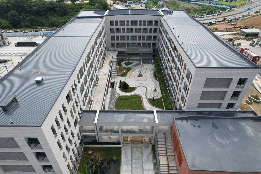 走進(jìn)位于溫泉鎮資福村資福路西側的岳西中學(xué)新校區,紅白相間的一幢幢大樓矗立。目前,校區圖書(shū)館、教學(xué)樓、宿舍樓均已全部建設完工,食堂內部相關(guān)設施已陸續開(kāi)始安裝,操場(chǎng)、籃球場(chǎng)正在進(jìn)行收尾階段。炎炎夏日中,項目施工人員和管理團隊正在緊張有序地為校園第一批新生的到來(lái)做最后的準備工作。校園綠化初見(jiàn)成效,各類(lèi)綠化苗木交相輝映、錯落有致,在改善校園生態(tài)環(huán)境的同時(shí),也將為師生們創(chuàng )造一個(gè)安靜舒適的學(xué)習和生活環(huán)境。