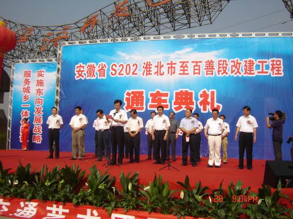 省交通廳廳長(cháng)梅勁,省公路局局長(cháng)秦勤,淮北市政府領(lǐng)導以及該公司副總經(jīng)理王可武參加了通車(chē)典禮儀式。