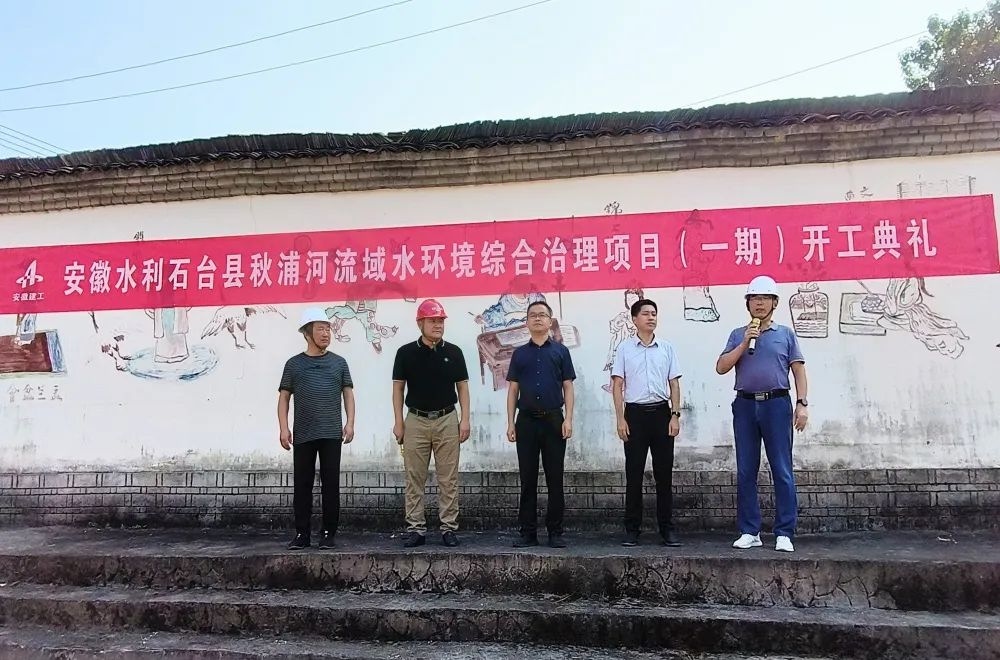 8月31日上午8時(shí)許,安徽水利承建的石臺縣秋浦河流域水環(huán)境綜合治理項目(一期)工程舉行開(kāi)工儀式,石臺縣水利局黨組書(shū)記、局長(cháng)王衛平宣布項目開(kāi)工??h水利局黨組成員、副局長(cháng)張時(shí)清主持開(kāi)工儀式。