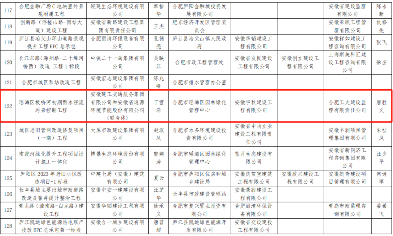 近日,經(jīng)合肥市城鄉建設局審定,合肥市市政工程協(xié)會(huì )正式公布2024年度合肥市市政工程“廬州杯”獲獎項目名單,我公司承建的瑤海區板橋河初期雨水徑流污染控制工程項目順利通過(guò)評審,榜上有名。