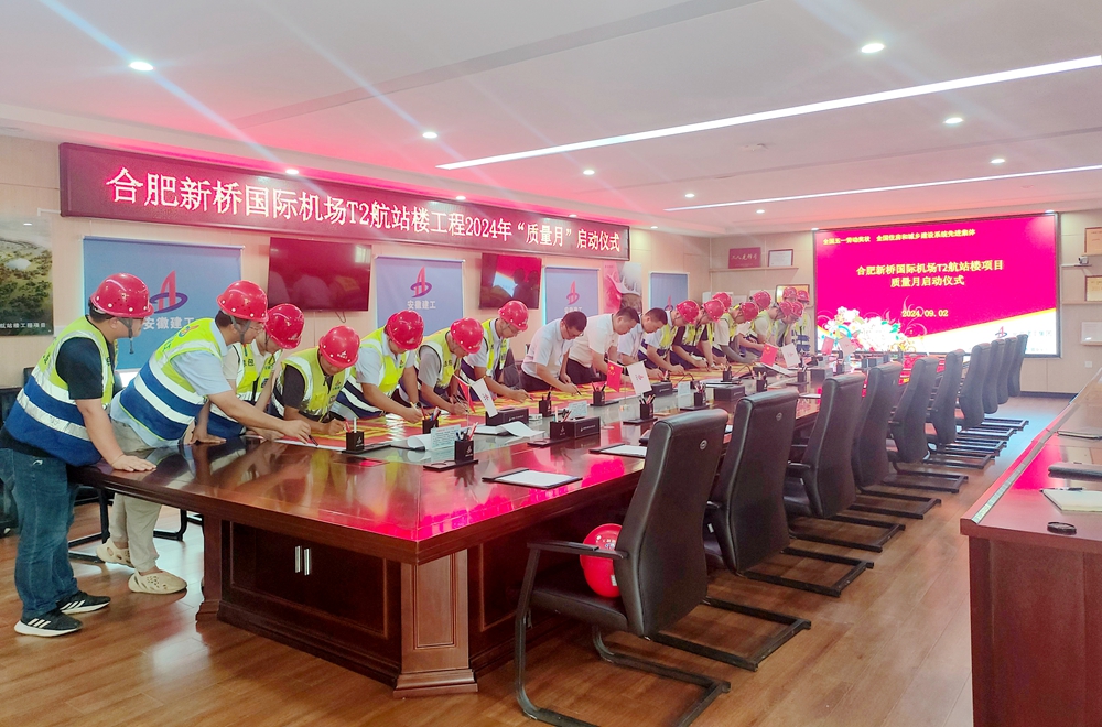 近日,第三公司在合肥新橋國際機場(chǎng)T2航站樓工程項目舉行2024年“質(zhì)量月”啟動(dòng)儀式。全體管理人員圍繞“加強質(zhì)量支撐 共建質(zhì)量強國”主題開(kāi)展質(zhì)量承諾簽名,積極營(yíng)造崇尚質(zhì)量、追求卓越的濃厚氛圍,為打造精品工程、標桿工程、樣板工程筑基賦能。