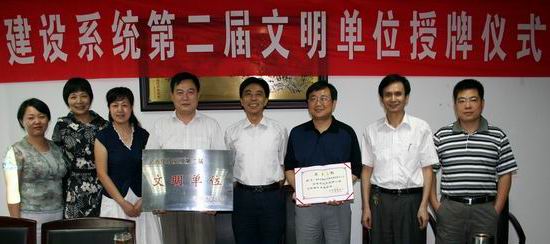 日前,在全省建設系統兩年一屆的文明單位評選活動(dòng)中,省路橋集團從2萬(wàn)多家申報單位中脫穎而出,榮獲“全省建設系統第二屆文明單位”光榮稱(chēng)號,這也是全省建筑類(lèi)企業(yè)唯一獲此殊榮的單位。7月14日下午,省建設廳文明辦領(lǐng)導、建工集團黨委工作部吳曉伍主任、機關(guān)黨委宋曉英書(shū)記等冒著(zhù)酷暑,親臨該公司進(jìn)行授牌。省路橋集團董事長(cháng)、總經(jīng)理童宗勝,黨委書(shū)記、副董事長(cháng)吳銳智,副總經(jīng)理、工會(huì )主席朱曉奎及相關(guān)部門(mén)負責人參加了授牌儀式。