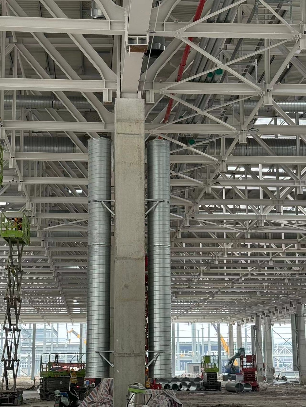 在建工安裝合肥經(jīng)開(kāi)區臨湖智能制造產(chǎn)業(yè)園項目現場(chǎng),項目部管理人員及水電班組、通風(fēng)班組、消防班組、虹吸雨水班組施工人員夜以繼日加班加點(diǎn)搶抓進(jìn)度。30名項目管理人員,226名施工人員,96輛登高機械,采取“白加黑” 、“5+2”模式施工作業(yè),確保各區域各專(zhuān)業(yè)施工生產(chǎn)穩步推進(jìn)。 目前正在進(jìn)行車(chē)間一通風(fēng)系統、雨水系統、消防系統,壓縮空氣與循環(huán)水系統等安裝作業(yè),站房一同步開(kāi)展管線(xiàn)預埋與預制工作。本周已完成車(chē)間一風(fēng)管安裝約4200平方米,雨水管道安裝約1100米,消防管道安裝約590米,橋架安裝約600米。