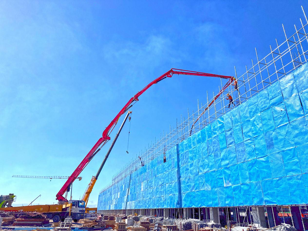 截至目前,廠(chǎng)房鋼結構完成1500噸建設量,獨立基礎、條形基礎全部完成,設備基礎正在施工;變電所二層主體施工完成,三層主體正在施工。