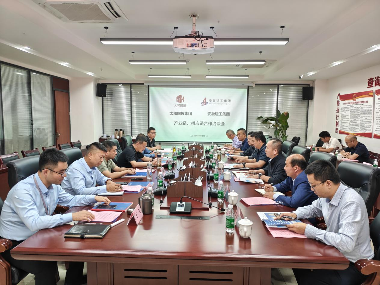 10月16日,公司黨委副書(shū)記、總經(jīng)理、阜陽(yáng)區域鏈長(cháng)李登祥,率安徽建工路港、安徽建工商貿、安徽建工建材等成員單位赴太和縣國有資產(chǎn)投資控股集團有限公司開(kāi)展產(chǎn)業(yè)鏈、供應鏈合作洽談會(huì )。