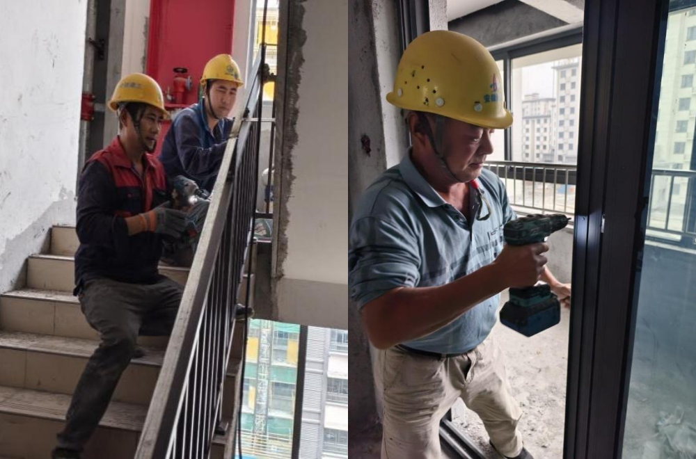 同時(shí),室內門(mén)窗安裝和欄桿扶手安裝同步推進(jìn),工人們仔細檢查每一處細節,確保質(zhì)量。