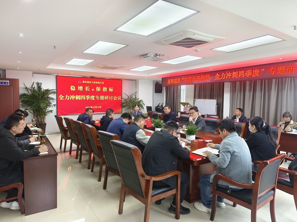 嘉和建筑組織召開(kāi)“穩增長(cháng)保指標、全力沖刺四季度”專(zhuān)題研討會(huì ),會(huì )上通報了一至三季度各項指標完成情況,與會(huì )人員圍繞主題依次發(fā)言,就如何保證全年經(jīng)濟指標完成獻言獻策,會(huì )議最后圍繞產(chǎn)值營(yíng)收提升、債權回收以及承接任務(wù)等重點(diǎn)工作進(jìn)行部署安排。會(huì )議要求,與會(huì )人員要加強工作主動(dòng)性,增強工作責任感,中層管理人員和黨員干部同志要自我加壓、主動(dòng)作為,全力以赴開(kāi)展工作,有效將目標落到實(shí)處、落到部門(mén)、落到個(gè)人,為沖刺全年目標任務(wù)貢獻力量。