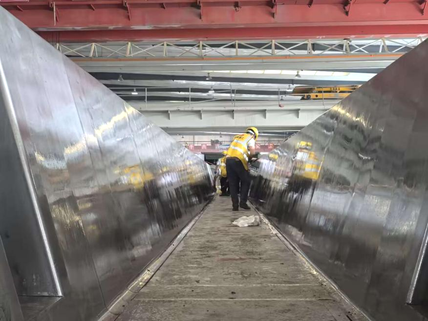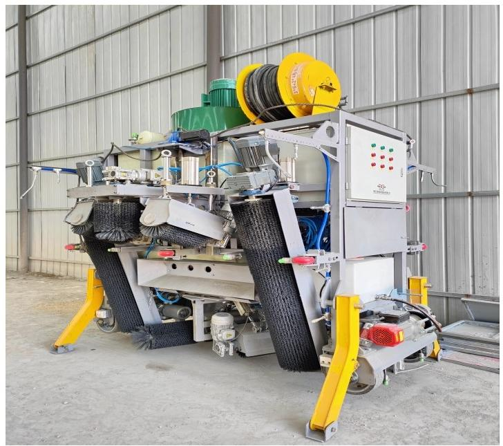 以往在箱梁預制時(shí),鋼模板采用人工手持電動(dòng)角磨機及脫模劑手動(dòng)涂刷作業(yè),存在施工效率低、清理不徹底、涂刷不均勻等直接影響預制梁體外觀(guān)和質(zhì)量的問(wèn)題。此外,人工打磨周期長(cháng)、無(wú)法與前后工序智能銜接,也制約了梁板流水線(xiàn)生產(chǎn)工業(yè)化建造的發(fā)展。