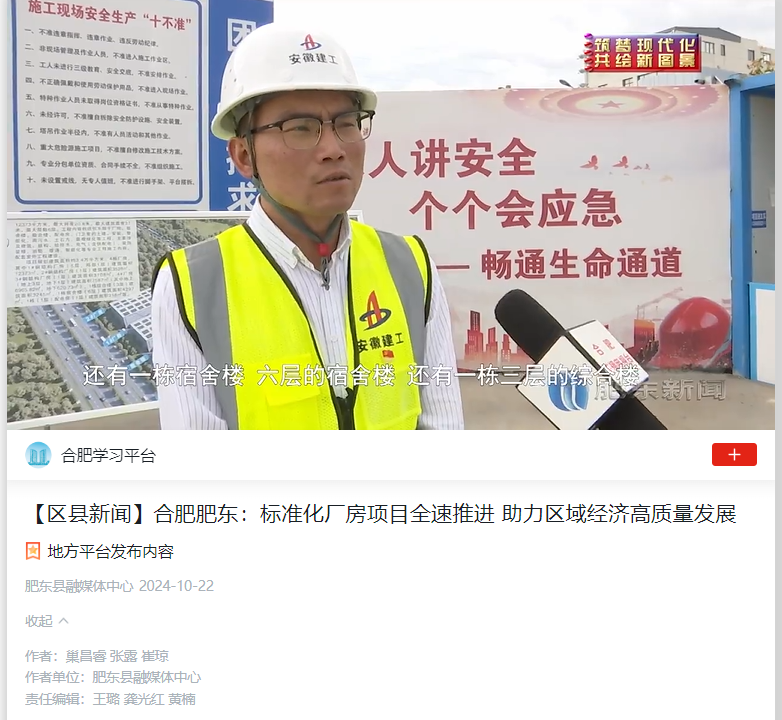 近日,學(xué)習強國以標準化廠(chǎng)房建設全速推進(jìn) 助力區域經(jīng)濟高質(zhì)量發(fā)展為題聚焦報道公司承建的肥東聯(lián)效科技智能信息標準化廠(chǎng)房建設項目最新進(jìn)展,受到廣泛關(guān)注。
