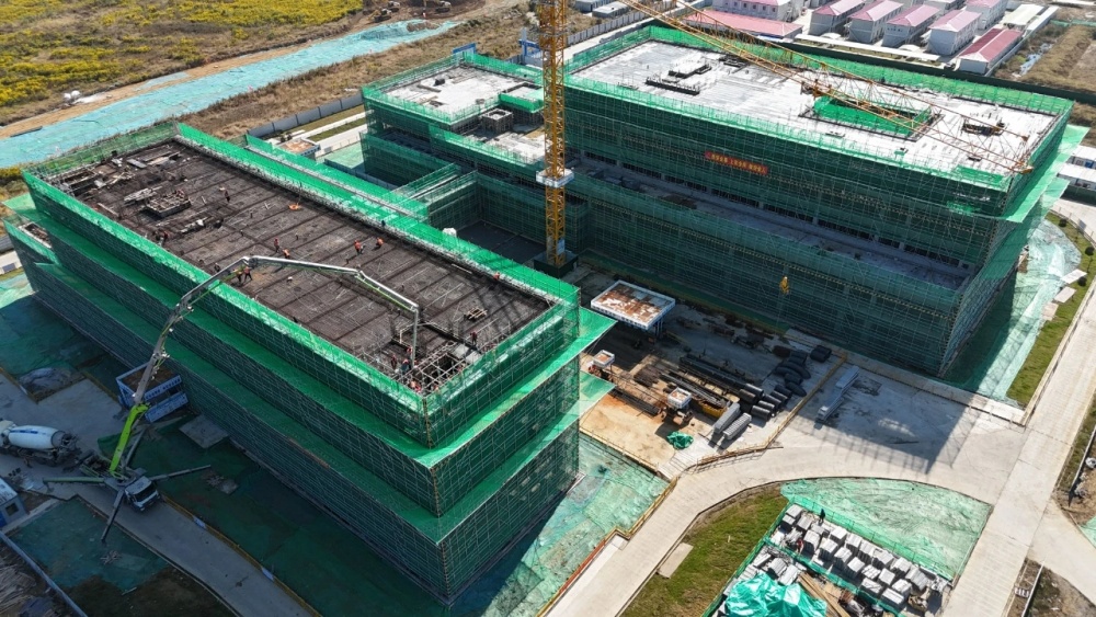 近日,隨著(zhù)最后一方混凝土的澆筑完成,標志著(zhù)國家重大科技基礎設施——合肥先進(jìn)光源配套工程項目綜合科研樓與生活服務(wù)樓主體結構完成全面封頂。