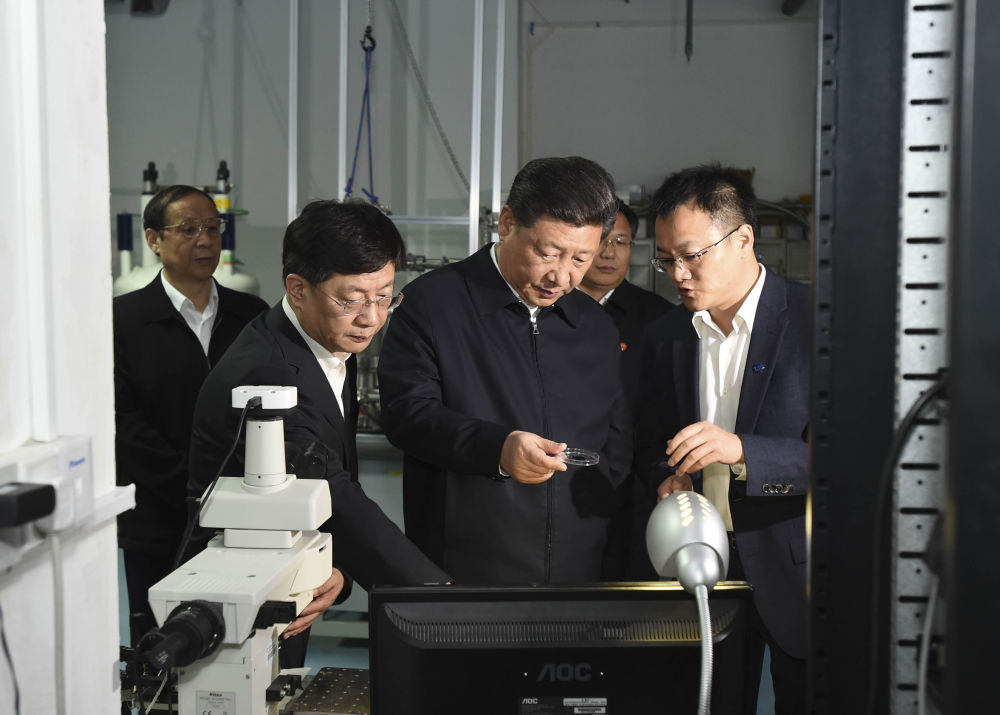 ??2016年4月26日,習近平在中國科技大學(xué)近代物理系自旋磁共振實(shí)驗室了解科研情況。