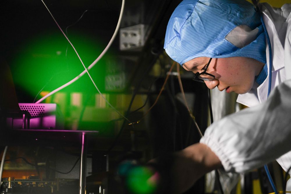 ??2022年1月31日,中國科學(xué)技術(shù)大學(xué)學(xué)生在中國科學(xué)院量子信息重點(diǎn)實(shí)驗室做實(shí)驗。