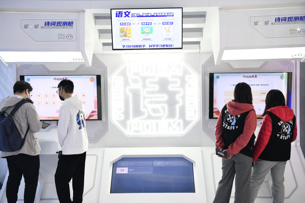 ??2022年11月17日,觀(guān)眾在于安徽合肥舉辦的第五屆世界聲博會(huì )上體驗教育領(lǐng)域智能產(chǎn)品。