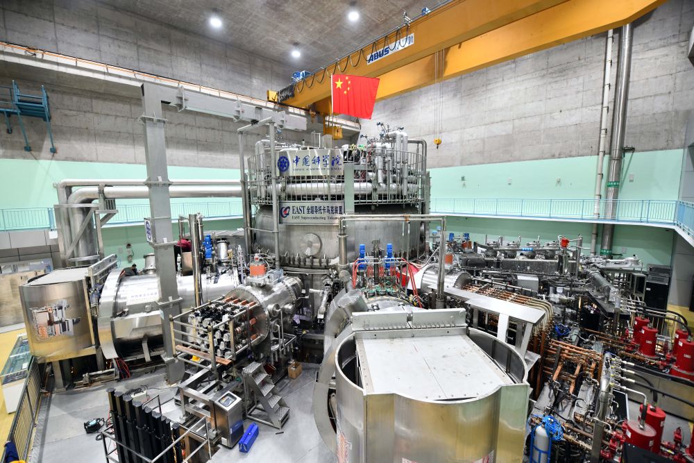 ??這是在安徽合肥科學(xué)島拍攝的“人造太陽(yáng)”——全超導托卡馬克核聚變實(shí)驗裝置(EAST)(2021年4月13日攝)。