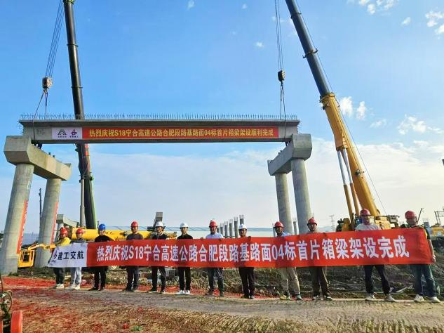 建工交航S18寧合高速公路合肥段路基路面04標首片箱梁架設順利完成