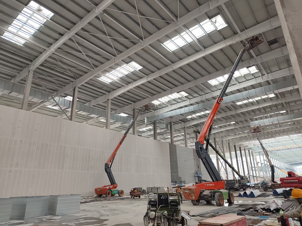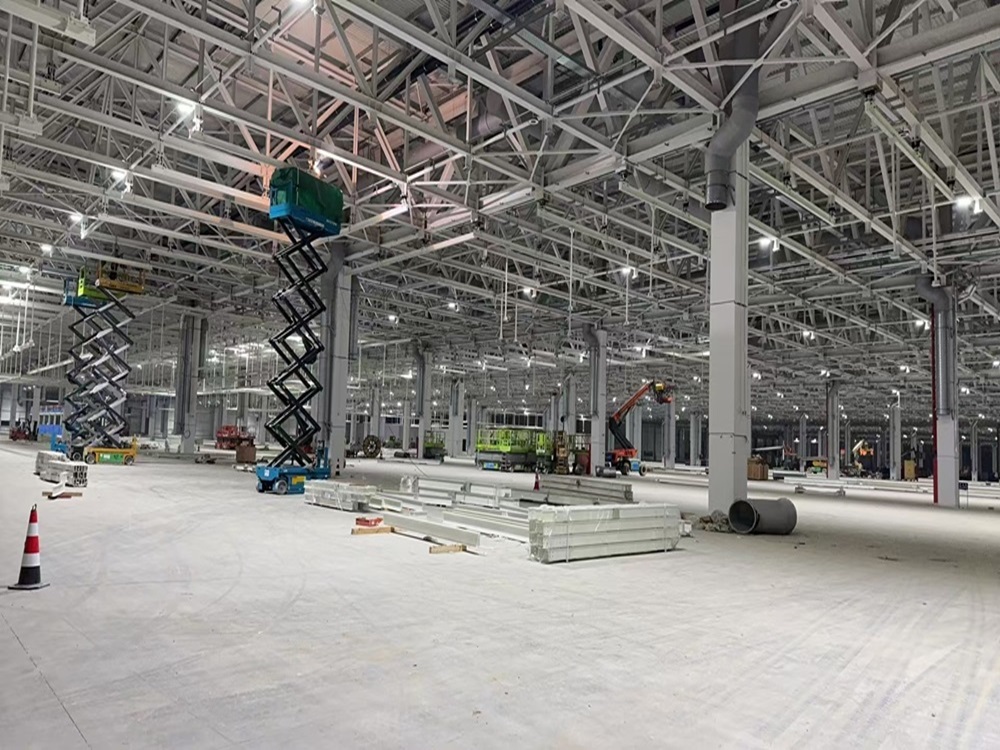 截至目前,車(chē)間一B區焊裝車(chē)間內的給排水管道、消防管道、暖通風(fēng)管、空調水管、虹吸雨水、630循環(huán)水管均全部安裝完成,已全面進(jìn)入試壓階段。正在進(jìn)行車(chē)間一沖壓車(chē)間及QA樓安裝工作,電氣系統進(jìn)入電纜放線(xiàn)安裝階段,暖通系統進(jìn)入風(fēng)口風(fēng)閥安裝階段。