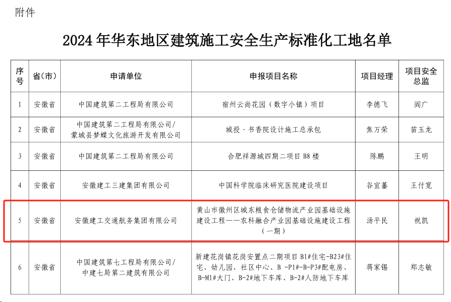 近日,皖南分公司所承建的城東糧食倉儲物流產(chǎn)業(yè)園項目喜獲“華東地區建筑施工安全生產(chǎn)標準化工地”榮譽(yù)稱(chēng)號,標志著(zhù)項目在安全管理、標準化施工等方面達到行業(yè)領(lǐng)先水平。