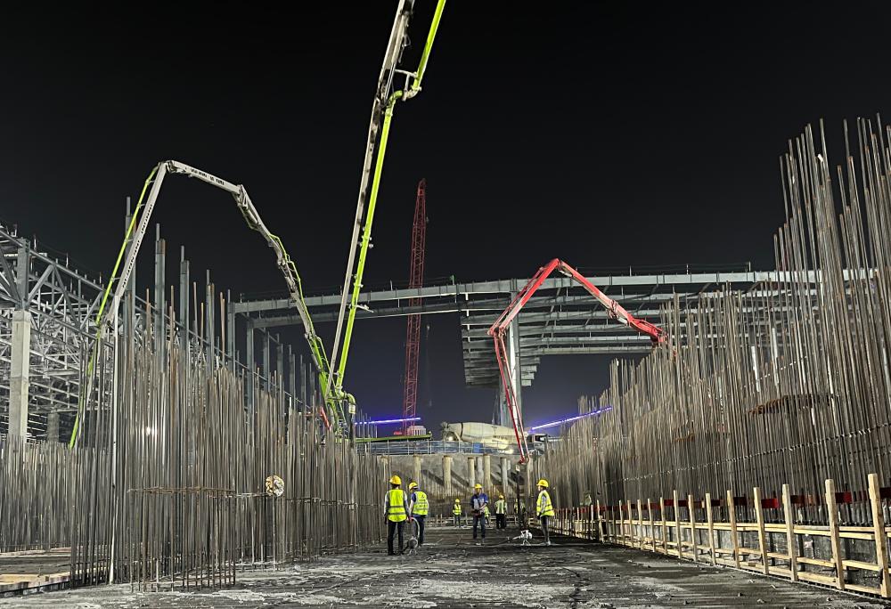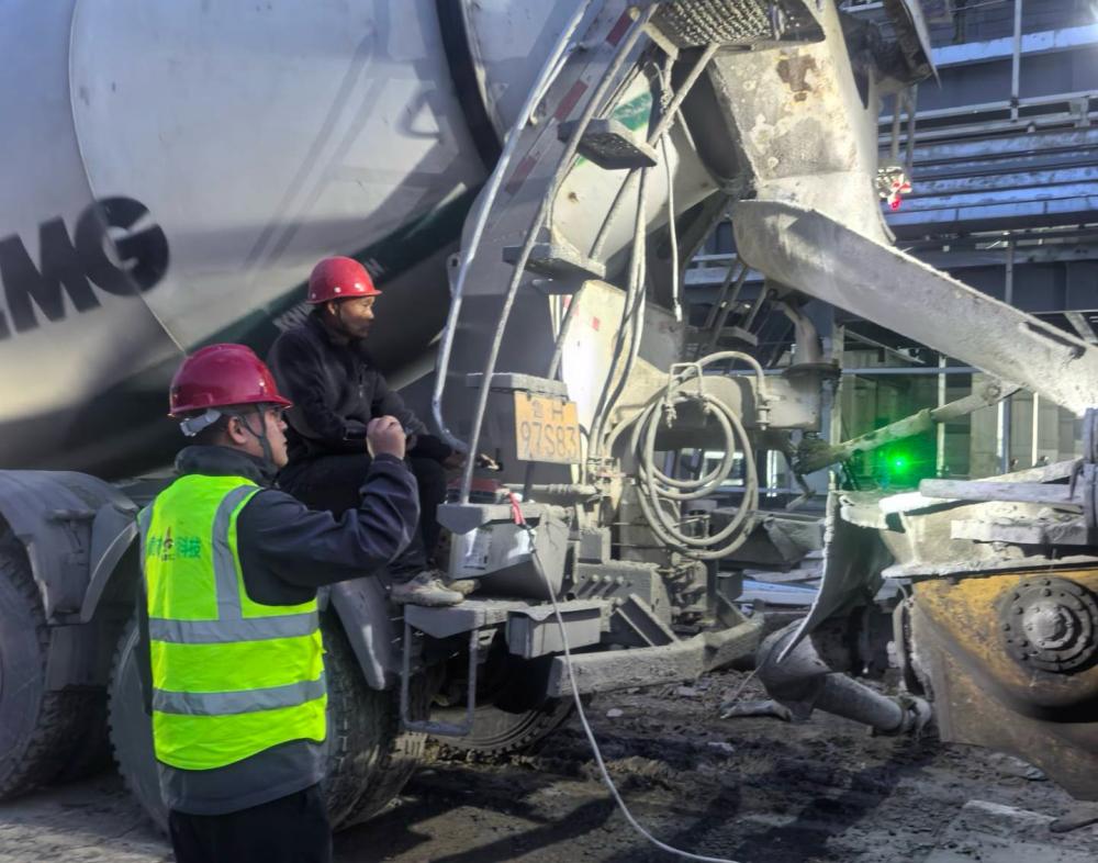 為保障項目順利推進(jìn),建工建材克服了夏季高溫、車(chē)輛管制、暴雨路滑等不利因素,通過(guò)優(yōu)化運輸路線(xiàn)、增加運輸車(chē)輛、加強現場(chǎng)協(xié)調等方式,有效保障了混凝土的連續供應。尤其在四季度,累計供應量超過(guò)20萬(wàn)方,投入攪拌車(chē)145輛,泵送設備25臺,召開(kāi)專(zhuān)項保供會(huì )議10余次,切實(shí)為項目建設贏(yíng)得了寶貴時(shí)間。