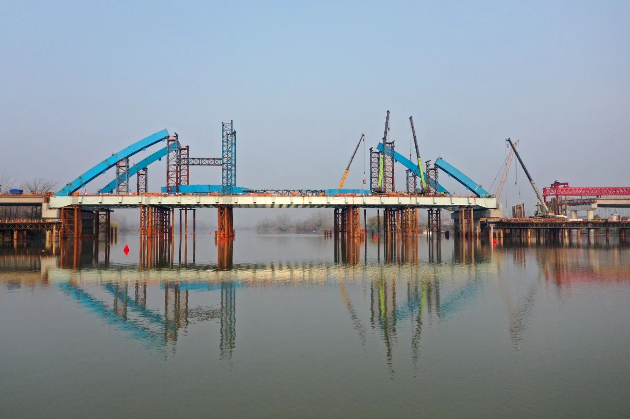 渦河1號大橋主橋鋼板組合梁由拱腳節段、拱跨鋼梁標準段、和梁跨鋼梁標準段3部分組成,共有47段,采用200t架橋機架設,目前已全部架設完成。此次架設是合龍段鋼梁,梁長(cháng)9.25米、頂寬45米、高3.5米、重269.4噸。為確保鋼梁順利架設,項目部多次召開(kāi)專(zhuān)題推進(jìn)會(huì ),技術(shù)負責人全程盯控,最終圓滿(mǎn)實(shí)現鋼梁架設節點(diǎn)目標。在鋼梁合龍時(shí),梁(橋)面的臨時(shí)支架和拱肋施工也同步展開(kāi)。目前,臨時(shí)支架和拱肋的加工已經(jīng)完成60%,預計年前完成全部架設任務(wù)。