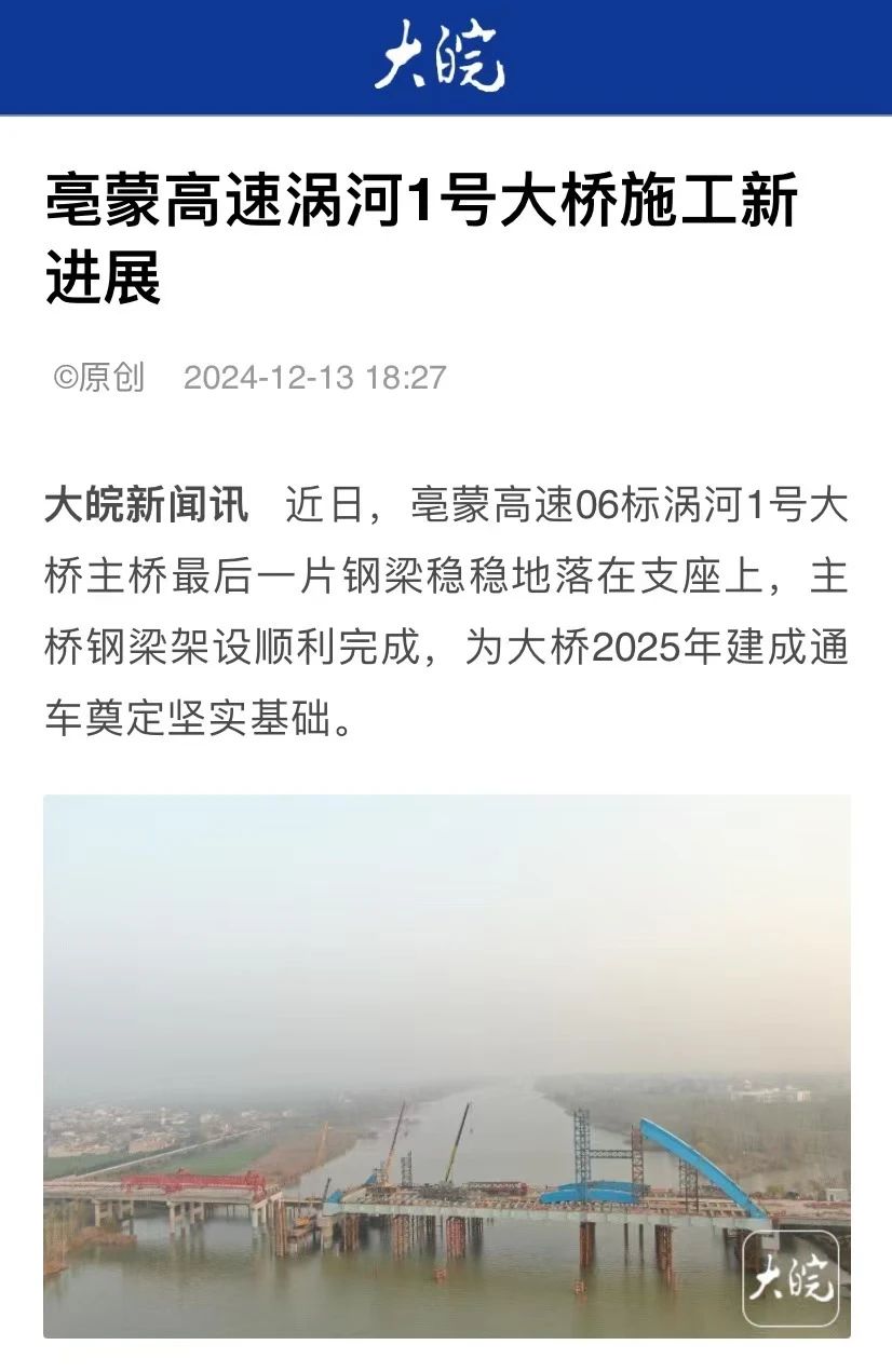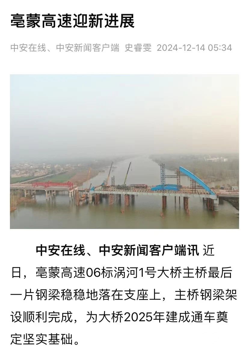 近日,安徽水利承建的亳蒙高速06標渦河1號大橋主橋鋼梁架設順利完成,為大橋2025年建成通車(chē)奠定堅實(shí)基礎,受到中安在線(xiàn)、大皖新聞、亳州晚報等主流媒體關(guān)注報道。