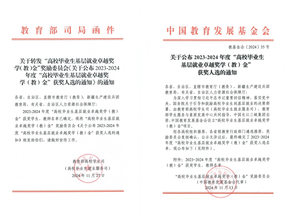 喜訊!建工建投集團職工榮獲“高校畢業(yè)生基層就業(yè)卓越獎學(xué)(教)金”