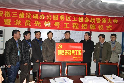會(huì )上,徐曉光向項目經(jīng)理何洪春等參戰黨員授黨員先鋒號牌匾并作會(huì )戰動(dòng)員講話(huà)。三建公司勞動(dòng)競賽委員會(huì )決定組織開(kāi)展勞動(dòng)競賽,并下達施工任務(wù)。何洪春介紹了項目情況及工期、質(zhì)量、安全、文明、成本等目標。參戰單位代表王緒徽、萬(wàn)和生,職工代表徐文政、張永芝,黨員代表李峰,團員青年、入黨積極分子代表朱旺成分表表態(tài)發(fā)言,充分表達了他們堅決完成施工任務(wù),向甲方和公司交一份滿(mǎn)意的答卷的決心。同時(shí),會(huì )戰《戰報》第一期編印完成并下發(fā)。動(dòng)員大會(huì )由三公司副總經(jīng)理左登宏主持。