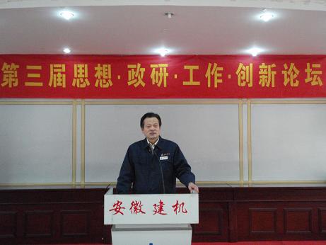 為加強思想政治研究工作,促進(jìn)各項工作的創(chuàng )新,推動(dòng)企業(yè)又好又快發(fā)展,12月25日下午,安徽建機公司隆重舉辦了第三屆思想·政研·工作·創(chuàng )新論壇。公司黨委書(shū)記王愛(ài)國,總工程師、副總經(jīng)理潘友杰,總會(huì )計師汪元貴、總經(jīng)理助理、辦公室主任張育軍、黨工部主任宋繼芳、工會(huì )副主席陳煒共同出席了這次論壇,來(lái)自各單位、部門(mén)領(lǐng)導及參與交流人員30余人參加此次論壇。論壇由黨工部主任宋繼芳主持。