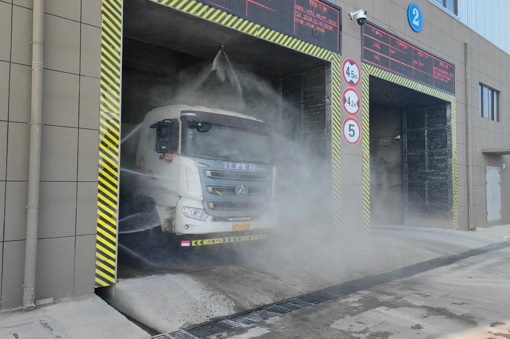 車(chē)輛在卸料完成后,進(jìn)入自動(dòng)沖洗平臺,沖洗完成后駛離;原材料倒入倉庫后,除塵設備會(huì )進(jìn)行自動(dòng)啟動(dòng)噴淋系統,確保粉塵不外溢;廠(chǎng)區內全天候實(shí)施濕式作業(yè),從自動(dòng)化噴淋系統,車(chē)輛運輸沖洗,回流污水和廢漿廢渣處理等方面,實(shí)現了廠(chǎng)站生產(chǎn)混凝土過(guò)程中揚塵、廢氣、污水和噪聲的“零排放”的目標……不斷推進(jìn)建材生產(chǎn)向著(zhù)綠色低碳發(fā)展。