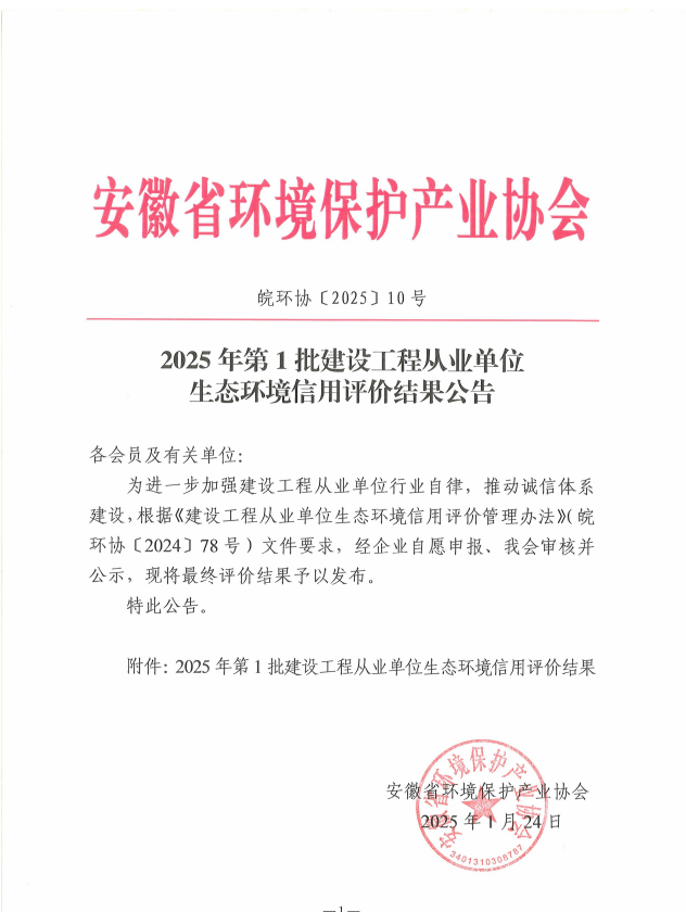 近日,安徽省環(huán)境保護產(chǎn)業(yè)協(xié)會(huì )公布了2025年第1批建設工程從業(yè)單位生態(tài)環(huán)境信用評價(jià)名單,由建工路港承建的徐州至淮北至阜陽(yáng)高速公路宿州段預制標項目榮獲“AAA級環(huán)保施工示范工地”榮譽(yù)稱(chēng)號。