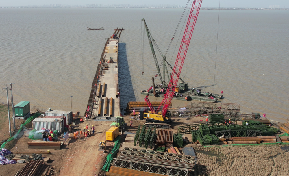 2 月 6 日,城東湖西岸拌合站鋼筋大棚基礎開(kāi)挖、上料口模板拆除工作順利完成,鋼筋大棚材料進(jìn)場(chǎng);城東湖兩岸鋼棧橋橋面板鋪設穩步推進(jìn),鋼管樁打設有序開(kāi)展,施工現場(chǎng)處處洋溢著(zhù)奮進(jìn)的活力。