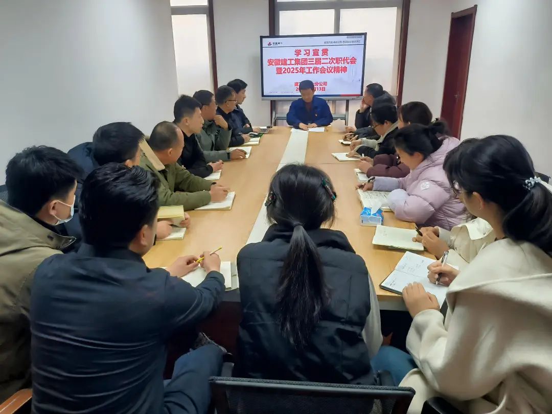2月9日至12日,安徽建工集團控股有限公司三屆二次職工代表大會(huì )暨2025年工作會(huì )議勝利召開(kāi)。會(huì )后,建工三建所屬各單位通過(guò)多種形式,傳達學(xué)習集團黨委書(shū)記、董事長(cháng)楊善斌作的題為《改革創(chuàng )新 擔當作為 強化企業(yè)管理 加快轉型升級 奮力推進(jìn)安徽建工集團高質(zhì)量發(fā)展大發(fā)展》講話(huà)精神和集團黨委委員、總會(huì )計師王淑德作的《集團年度工作報告》精神,迅速掀起學(xué)習宣貫熱潮,確保會(huì )議精神傳達到每一位職工,進(jìn)一步統一思想、凝心聚力,為推動(dòng)集團轉型發(fā)展、高質(zhì)量發(fā)展、大發(fā)展貢獻力量。