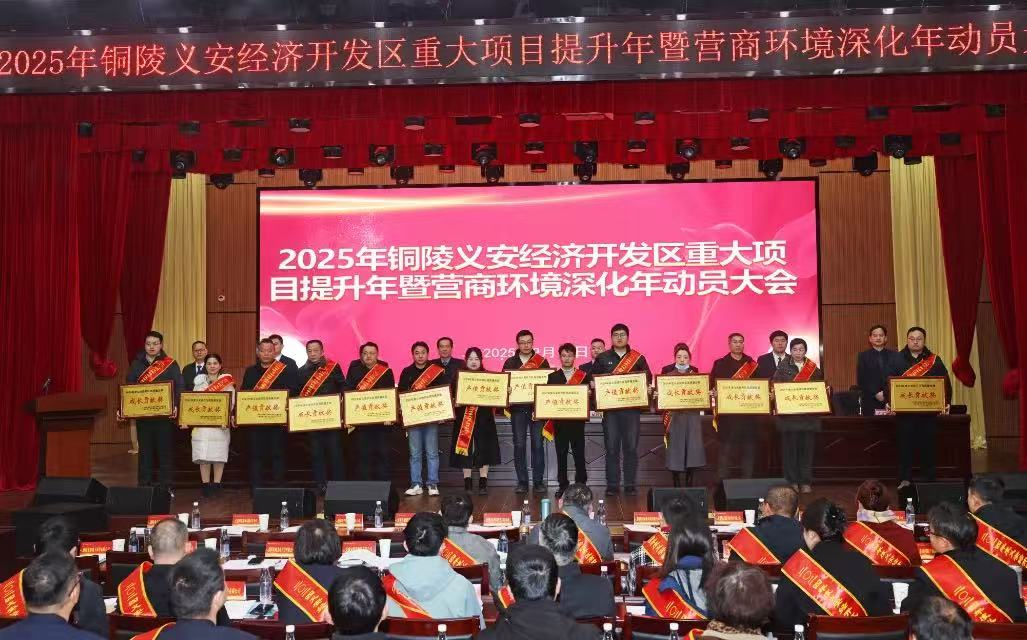 2月19日上午,銅陵義安經(jīng)開(kāi)區召開(kāi)2025年義安經(jīng)開(kāi)區重大項目提升年暨營(yíng)商環(huán)境深化年動(dòng)員大會(huì ),重點(diǎn)表彰在義安經(jīng)開(kāi)區高質(zhì)量發(fā)展中作出突出貢獻的集體和個(gè)人,安徽建工長(cháng)江建設投資有限公司現場(chǎng)獲頒“2024年度義安經(jīng)開(kāi)區高質(zhì)量發(fā)展產(chǎn)值貢獻獎”。