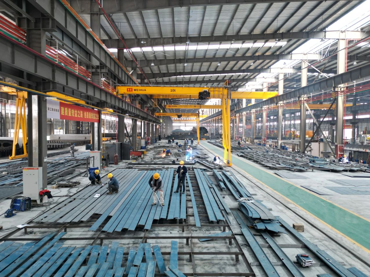 為積極響應集團轉型發(fā)展的戰略號召,建工智能制造積極拓展業(yè)務(wù)領(lǐng)域,與蕪湖造船廠(chǎng)簽訂戰略合作協(xié)議。新春伊始,蕪湖公司造船車(chē)間一番繁忙景象。當前正在進(jìn)行“18522”船舷側分段及縱、橫槽壁的大組件組裝,“18523”船的舷側分段的小組件加工及“6608”船的舷側、機艙分段的下料加工,以“拉滿(mǎn)弓、繃滿(mǎn)弦”的狀態(tài)準備全負荷沖刺“開(kāi)門(mén)紅”!2025年建工智能制造將加速拓展造船業(yè)市場(chǎng),延伸產(chǎn)業(yè)鏈,為開(kāi)啟百億制造產(chǎn)業(yè)建設新征程貢獻力量!