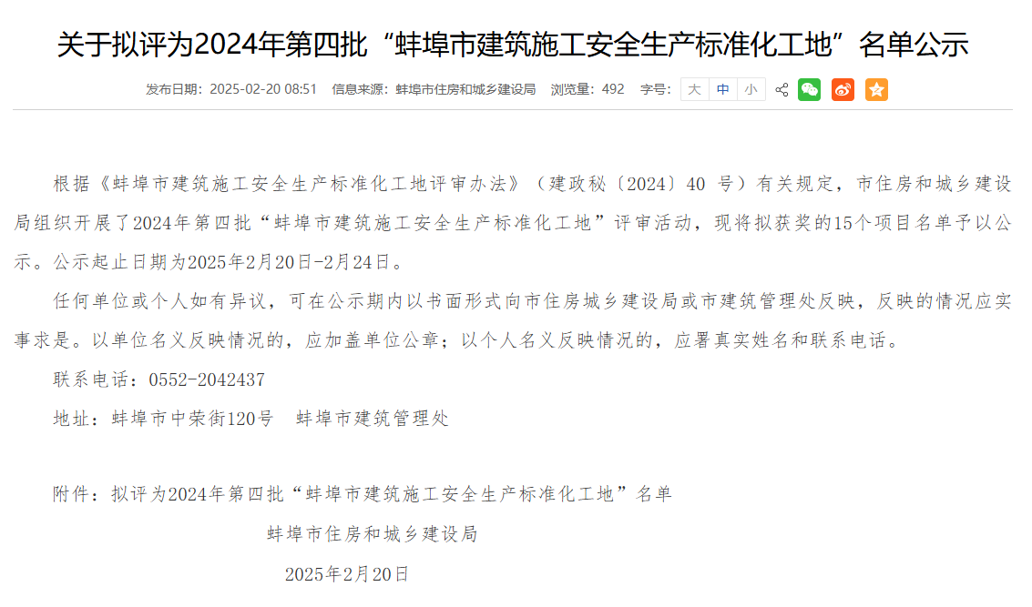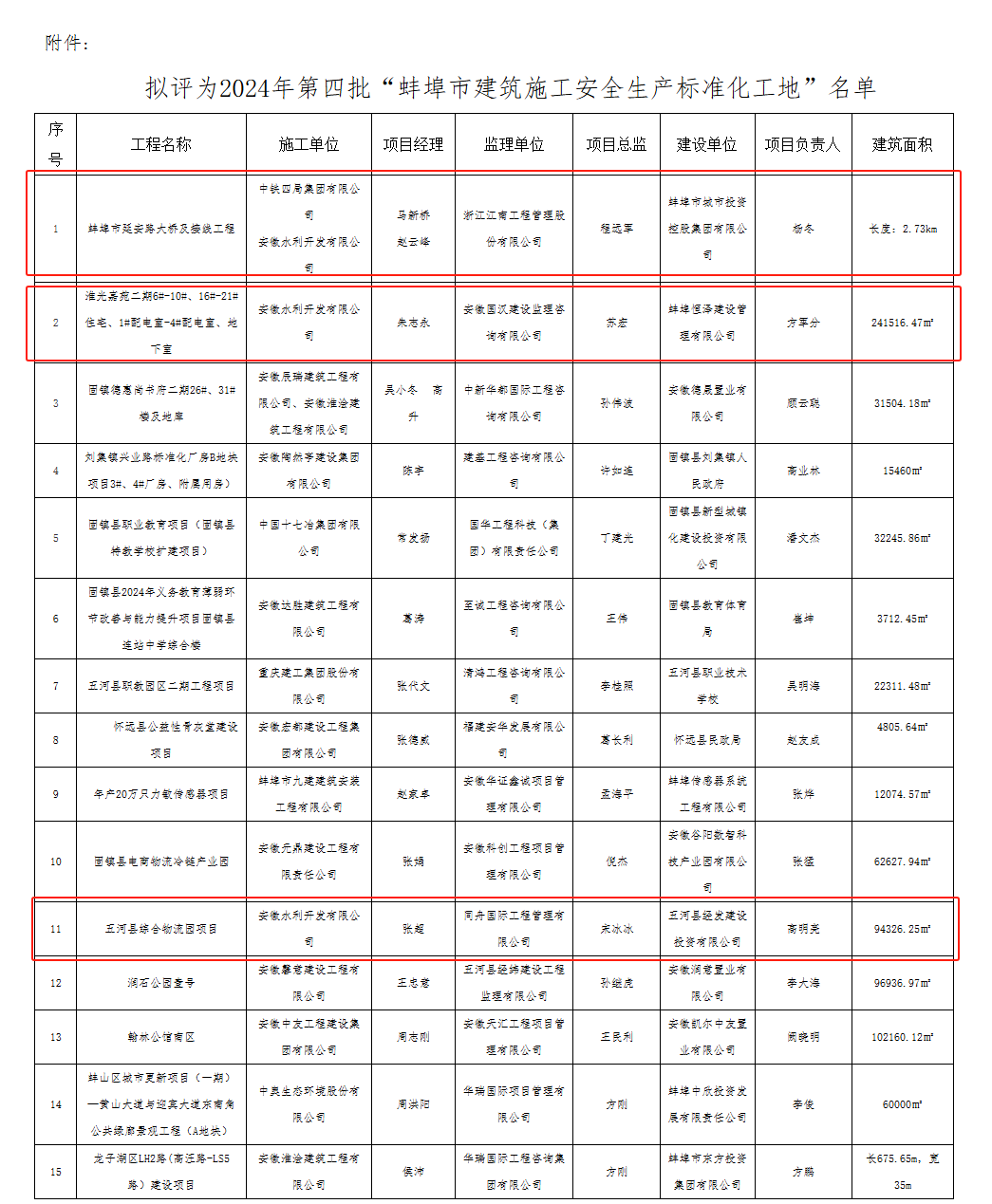 喜訊!建工水利三個(gè)項目榮獲“蚌埠市建筑施工安全生產(chǎn)標準化示范工地”稱(chēng)號