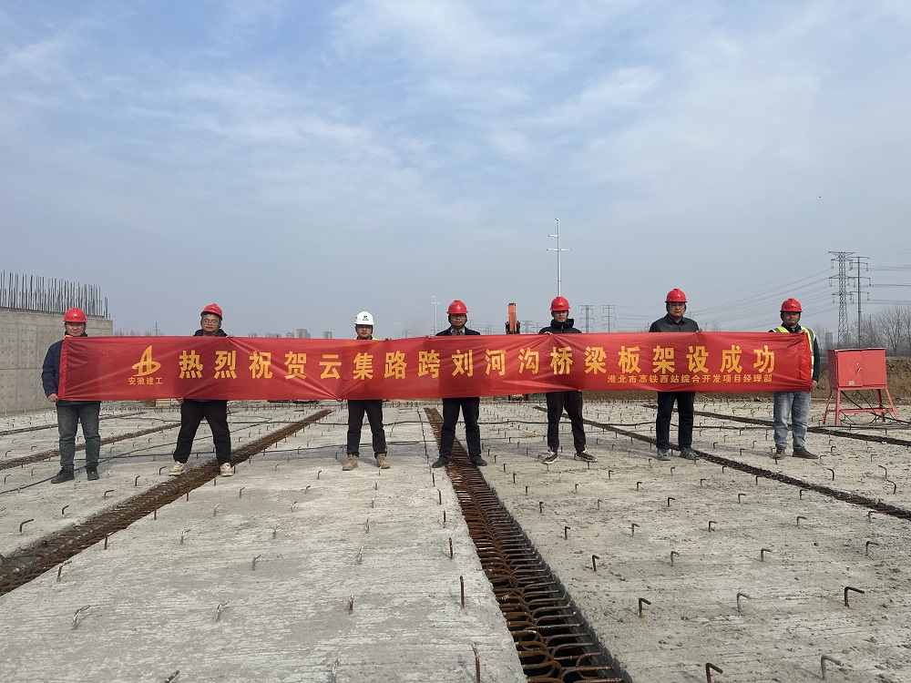 3月9日下午,隨著(zhù)最后一片預制箱梁精準就位,建工建投集團淮北市高鐵西站綜合開(kāi)發(fā)項目云集路跨劉河溝橋梁板架設圓滿(mǎn)完成。