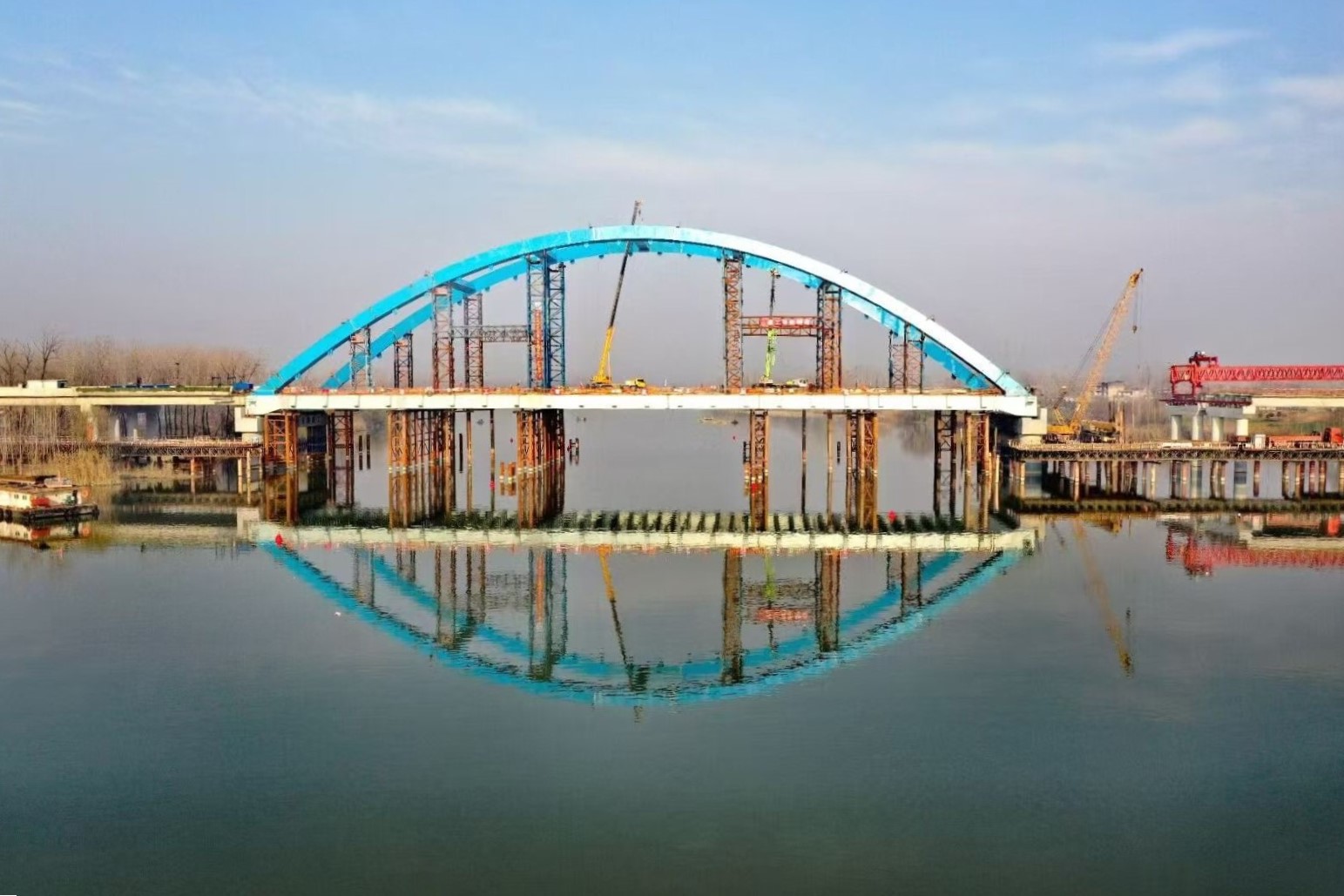 截至目前,大橋主體結構、橋面鋪裝、主跨主梁安裝、主跨拱橋預制橋面板安裝任務(wù)已全部完成,正在緊張有序地進(jìn)行主橋現澆濕接縫作業(yè)。在開(kāi)展橋面鋪裝和主跨拱橋安裝施工過(guò)程中,項目團隊運用高精度的測量?jì)x器、先進(jìn)的吊裝設備,精準控制、精確安裝,確保各項工作達標、安全、高效。
