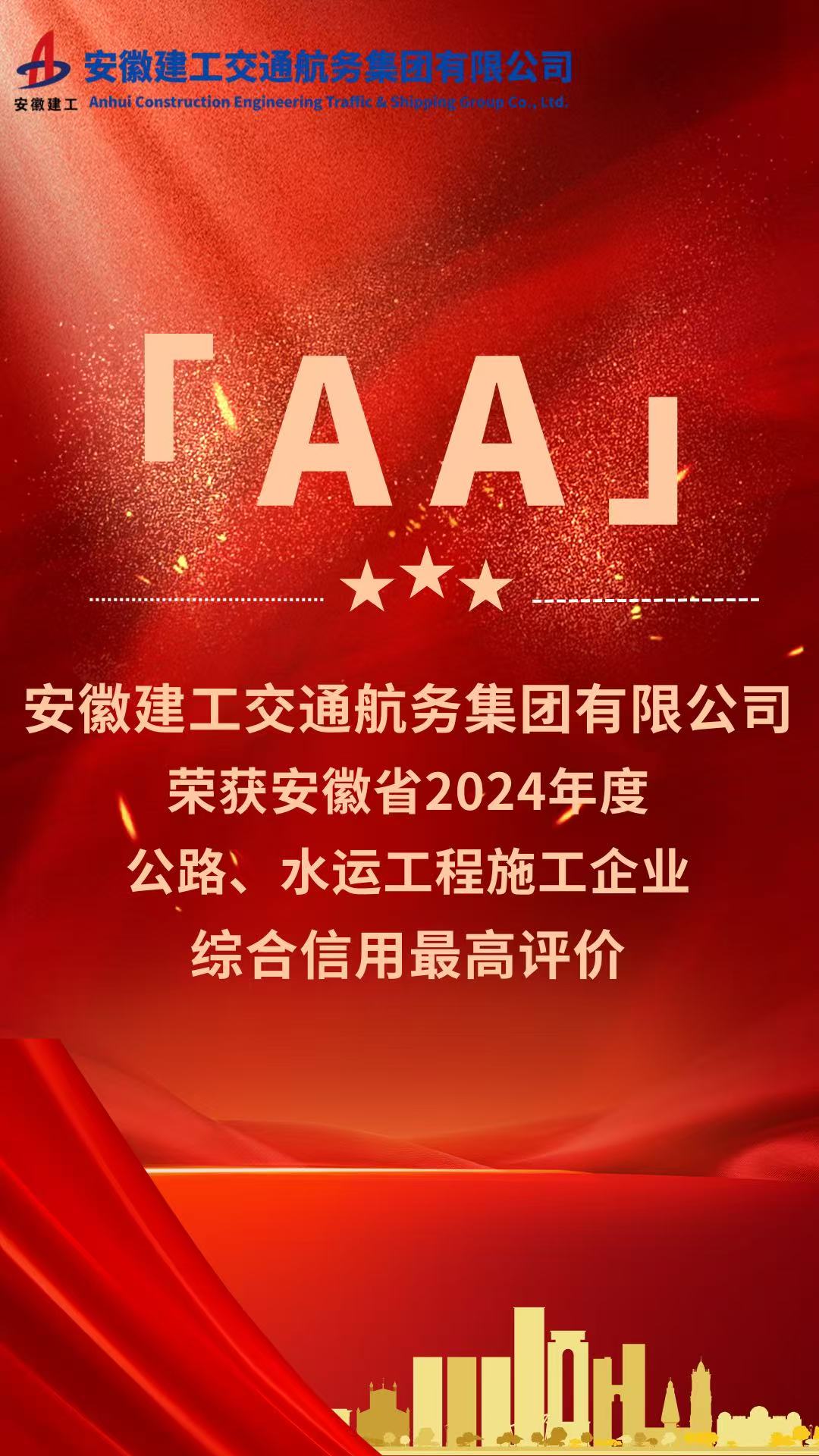 “AA”級信用評價(jià)是安徽省公路水運建設領(lǐng)域信用評價(jià)最高等級。獲此殊榮,充分彰顯了公司精湛的履約能力、一流的管理水平和良好的信用形象。