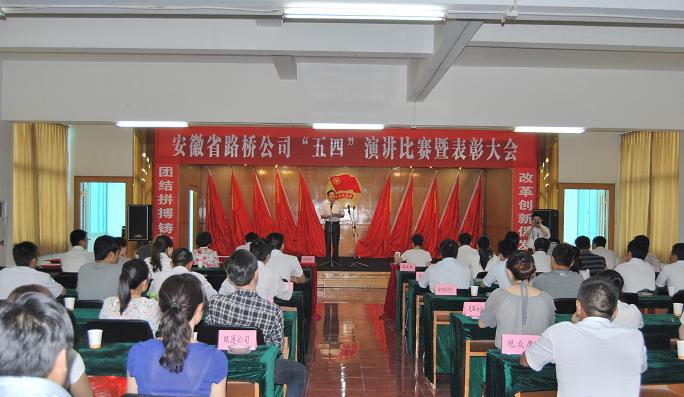 5月18日,由安徽省公路橋梁工程公司團委主辦的五四演講比賽暨表彰大會(huì )在七樓會(huì )議室隆重舉行,會(huì )議表彰了2011年度優(yōu)秀團支部、優(yōu)秀團干部、優(yōu)秀團員、青年崗位能手、青年技術(shù)標兵。公司總經(jīng)理汪衛東、黨委書(shū)記陳光磊、集團團委書(shū)記邢應梅、公司副總經(jīng)理孫學(xué)軍、副總經(jīng)理劉要武、工會(huì )主席胡運春等領(lǐng)導出席大會(huì )并親自擔任演講決賽的評委。