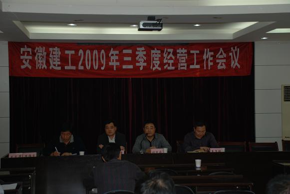10月20日下午,安徽建工集團召開(kāi)2009年三季度經(jīng)營(yíng)工作會(huì )議。集團公司董事長(cháng)、總經(jīng)理胡運成,副總經(jīng)理戴良軍,所屬各單位、直屬經(jīng)濟實(shí)體主要領(lǐng)導或分管領(lǐng)導、經(jīng)營(yíng)部門(mén)負責人等出席了會(huì )議,集團公司經(jīng)營(yíng)部、財務(wù)資產(chǎn)部、人力資源部負責人參加了會(huì )議。會(huì )議由集團經(jīng)營(yíng)部副主任陳傳文主持。