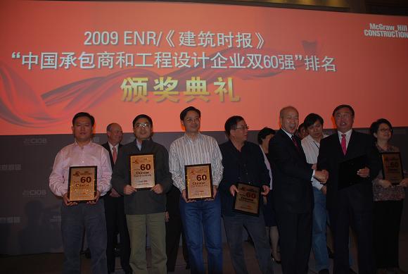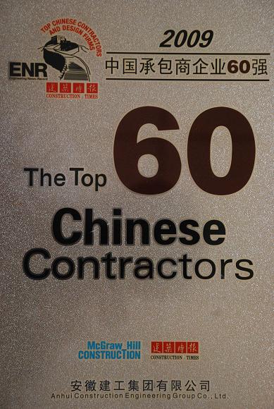 2009年11月5日,第六屆ENR/《建筑時(shí)報》中國承包商和工程設計企業(yè)“雙60強”頒獎典禮在重慶隆重召開(kāi)。會(huì )上再傳喜訊:安徽建工集團再度榮登中國承包商60強,排名第32位,比2008年上升6位,這是安徽建工繼榮獲“中國企業(yè)500強”“全球最大國際承包商225強”之后的又一項榮譽(yù)。