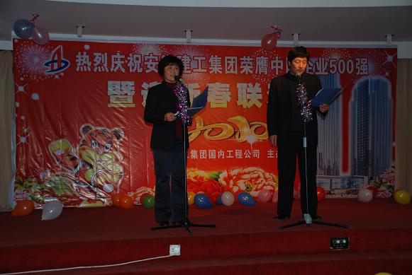 12月30日下午,由國內工程公司主辦的熱烈祝賀安徽建工集團榮膺中國企業(yè)500強暨迎新春聯(lián)歡會(huì )在學(xué)苑大廈多功能廳隆重舉行。集團公司董事長(cháng)、總經(jīng)理胡運成,黨委書(shū)記張海平,副董事長(cháng)李長(cháng)斌,副總經(jīng)理戴良軍,紀委書(shū)記、工會(huì )主席劉振武,副總經(jīng)理王元曦,總經(jīng)理助理童宗勝、楊斌,副總會(huì )計師王曉軍,副總工程師宣善宏以及機關(guān)部門(mén)主要負責人應邀出席。國內公司全體員工參加了聯(lián)歡活動(dòng)。
