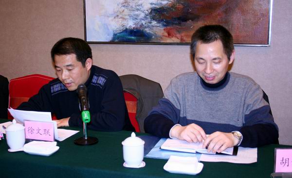 建工集團董事會(huì )秘書(shū)徐文聯(lián)(左)和辦公室副主任胡六中(右)分別宣讀《先進(jìn)辦公室、優(yōu)秀辦公室主任評選辦法》和《辦公室主任聯(lián)席會(huì )議制度》征求意見(jiàn)稿