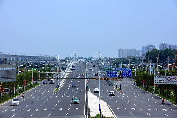 The Overpass-Fuyang North Road is by far the longest overpass in Hefei city. It is an express way connecting the main urban area of Hefei with the northern new city. It is reputed as the first overpass in Hefei north wing and the first north-bound road of Hefei, with a total length of 7.02 kilometers and an investment of RMB 2.248 Billion Yuan.