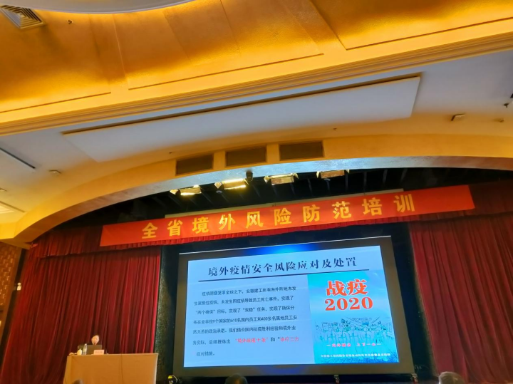 July 15th / Hefei / Ms. Xing Yingmei, Deputy General Manager of Anhui Construction Engineering Group Co., Ltd and Secretary of General Party Branch and General Manager of ACEG Overseas Business Department, was invited to give a special lecture by the sponsor of Risk Prevention Training Course for Biz Overseas – a program organized by Anhui Provincial Department of Commerce,aiming to improve the awareness and ability of foreign-related practitioners to deal with all risks imposed from foreign-related businesses. The title of Ms. Xing Yingmei’s lecture was: On security risk prevention for enterprises in dealing with foreign-related businesses. Some 200 persons in charge of commercial departments of all cities and foreign trade enterprises in and out of Anhui Province took part in the event.